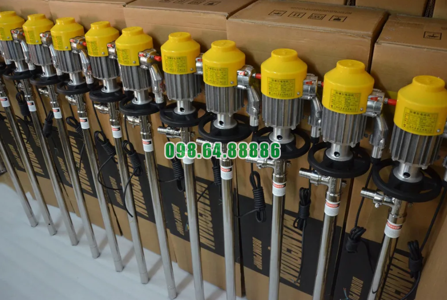 Khi cánh bơm quay, áp suất tại tâm bơm giảm xuống, tạo ra lực hút giúp chất lỏng từ thùng phuy 200L được đưa vào bên trong ống bơm inox SUS304. Nhờ chiều dài ống lên đến 880mm, thiết bị có thể tiếp cận sâu vào đáy thùng, đảm bảo hút được tối đa lượng chất lỏng.