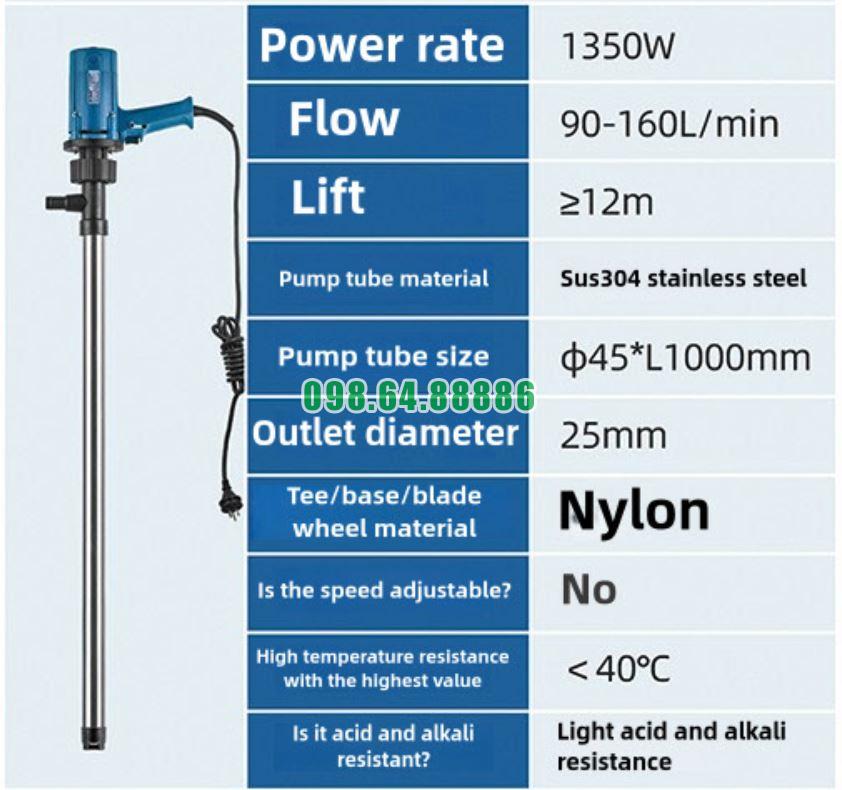 Khám phá các tính năng ưu việt trên Bơm điện cầm tay hút thùng phuy JDT-1350W-SUS304N cho thấy đây là thiết bị nhỏ gọn nhưng hiệu quả cao. Với động cơ ổn định, vật liệu inox bền bỉ và thiết kế linh hoạt, sản phẩm đáp ứng tốt nhu cầu bơm hút trong nhiều môi trường làm việc khác nhau.