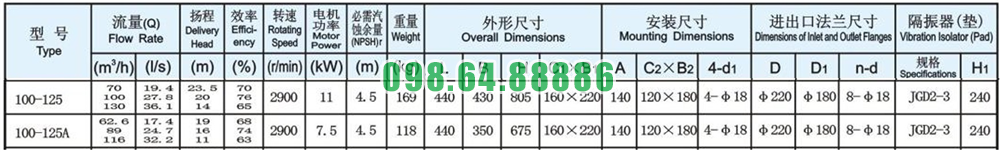Máy bơm ly tâm, bơm lùa, bơm lắp thẳng trục đứng ISG100-125, IRG100-125 11kw, 100m3, 20m