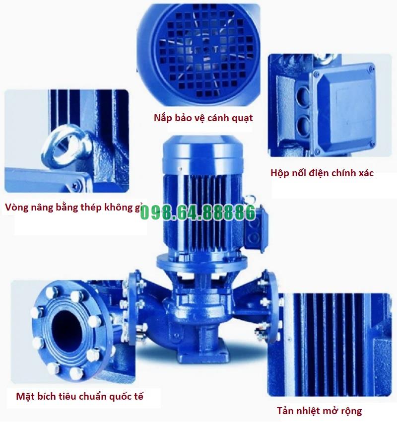 Máy bơm tăng áp trục đứng, inline ISG100-250, IRG100-250 11kw, 100m3, 20m