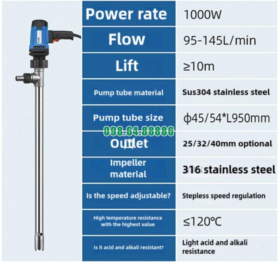 Bơm dầu phuy 200 lít JDT-1000W-G120