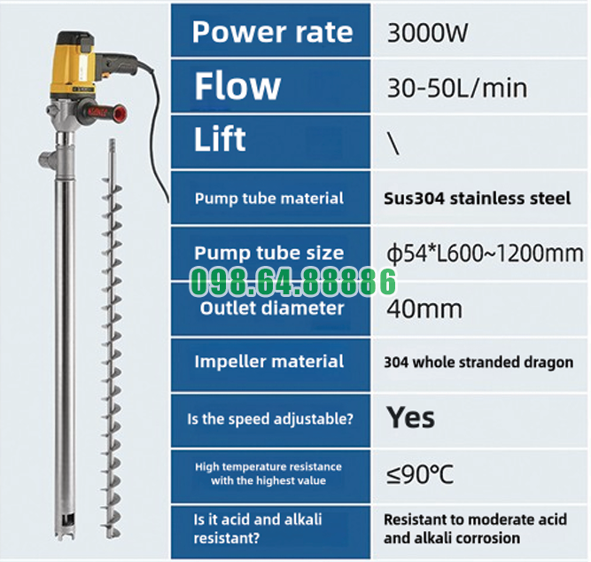 Nhờ cấu trúc kỹ thuật hợp lý và khả năng điều chỉnh tốc độ linh hoạt, Bơm điện cầm tay hút thùng phuy JDT-3000W-YT mang lại hiệu quả cao trong việc bơm hút nhiều loại chất lỏng khác nhau, trở thành giải pháp tối ưu cho nhiều ngành sản xuất hiện nay.