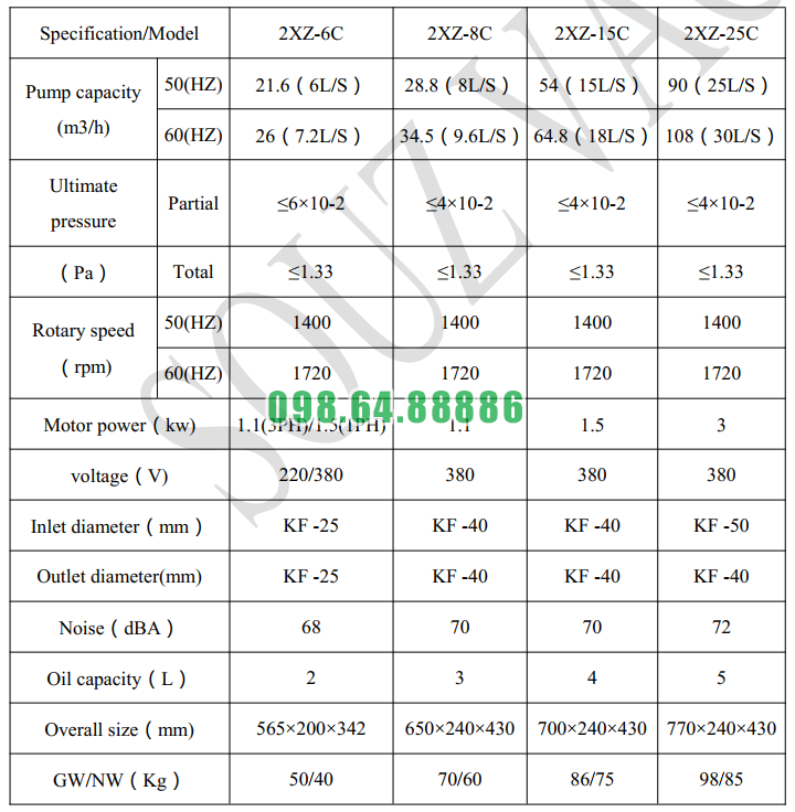 Bơm 2XZ-6C là bơm chân không loại trung bình, không thiết kế để hút:
