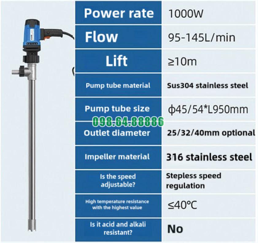 Bơm thùng phuy điện JDT-1000W-304SUS