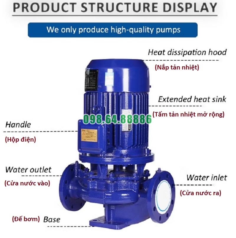 Máy bơm ly tâm, bơm lùa, bơm lắp thẳng trục đứng ISG100-125, IRG100-125 11kw, 100m3, 20m